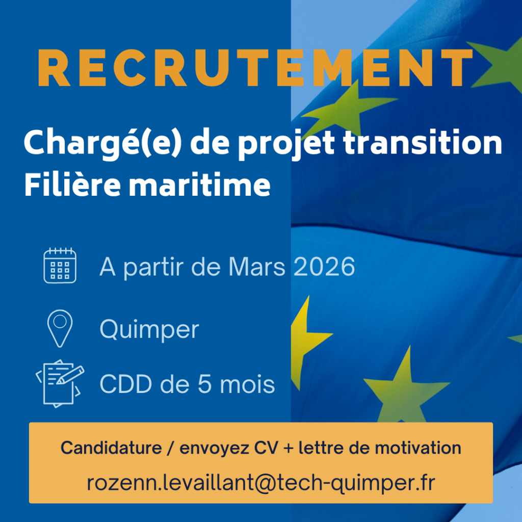 Vous souhaitez contribuer concrètement à la transition du secteur maritime et vous impliquer dans un projet européen ambitieux ? La Technopole Quimper-Cornouaille recrute un(e) chargé(e) de projet transition – Filière maritime au sein de son Pôle Europe. En appui de la cheffe de projet, vous participerez à la mise en œuvre du projet Impact4Mar, dédié […]